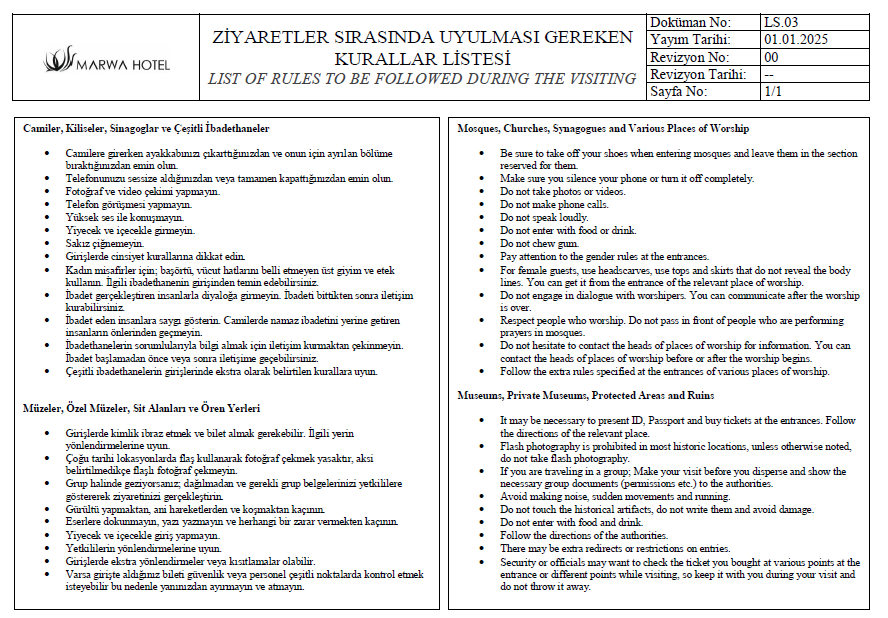 ZİYARETLER SIRASINDA UYULMASI GEREKEN KURALLAR LİSTESİ